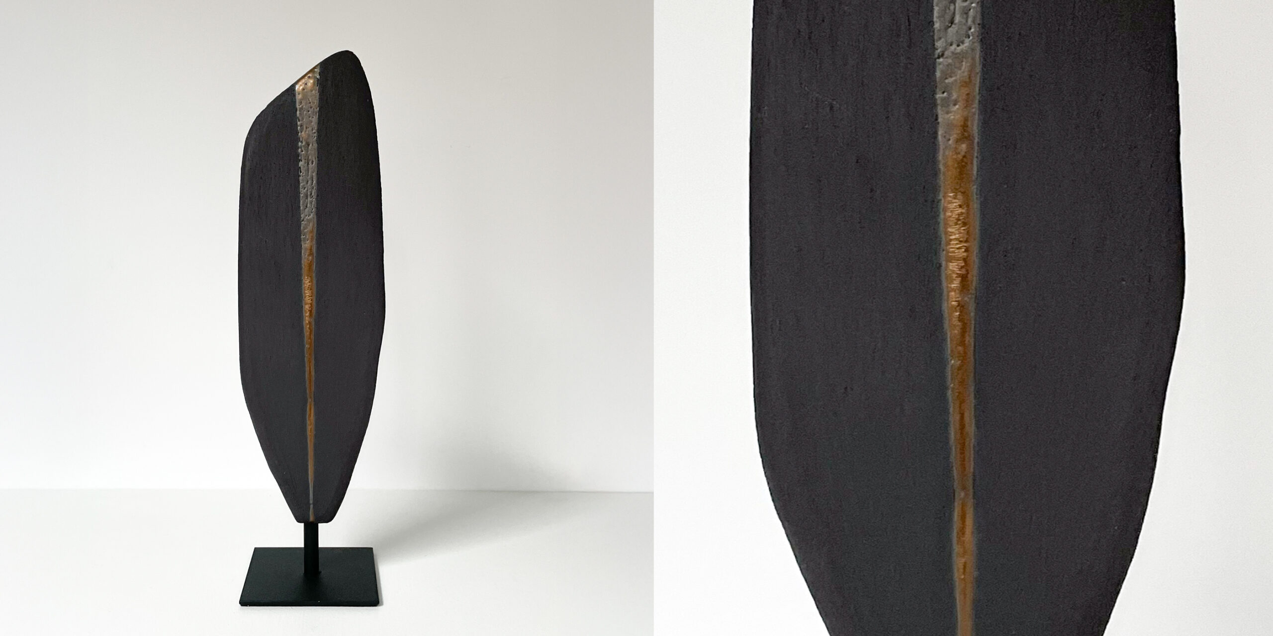 Sculpture en grès noir émail en bronze, socle en acier noir, pièce unique.